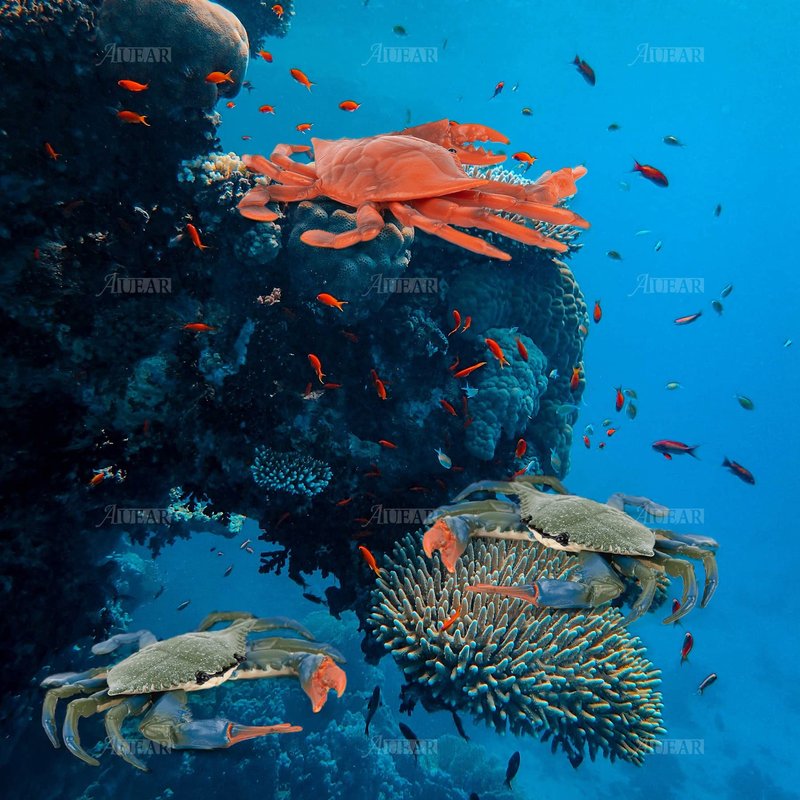 AUEAR, 2 Pack Fake Animal Sea Life Blue Red Crabs Action Figures Ocean Model Ornament for Swim Bath