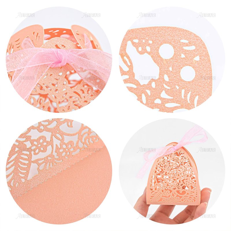 - 【MATERIAL】Rose candy boxes are made from pearlescent art paper, laser cut design, come with free ribbon.