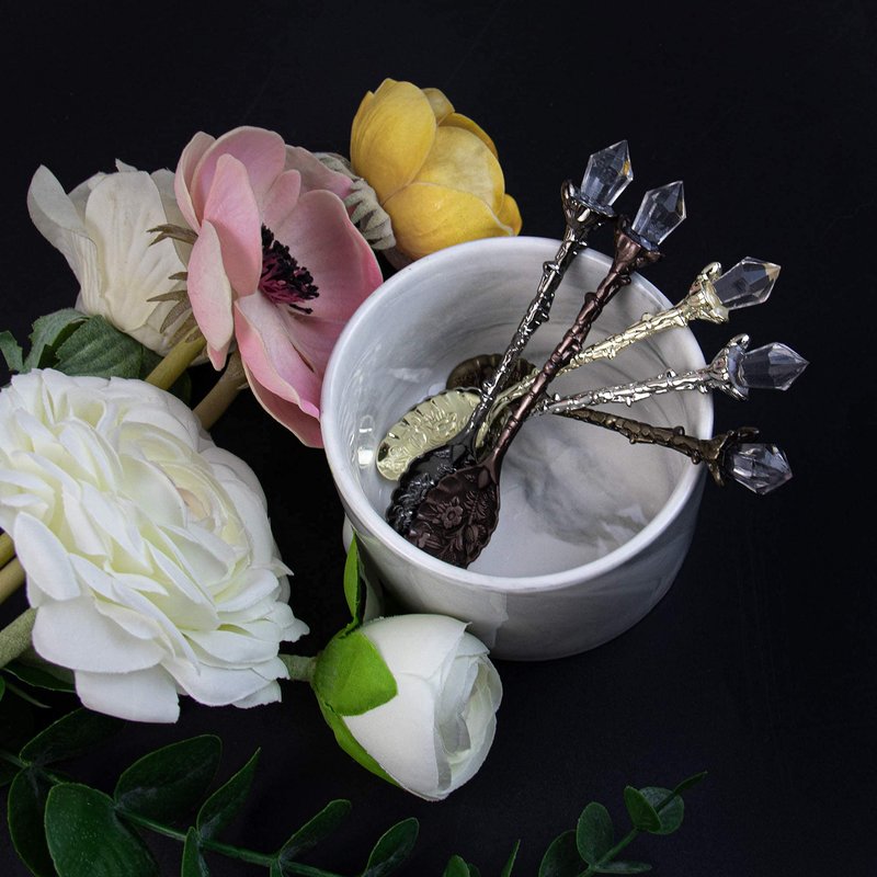 AUEAR, Retro Crystal Antique Alloy Spoon Coffee Tea Spoon Dessert Mini Ice Cream Decorative Spoons Set for Home Office (5 Pack)