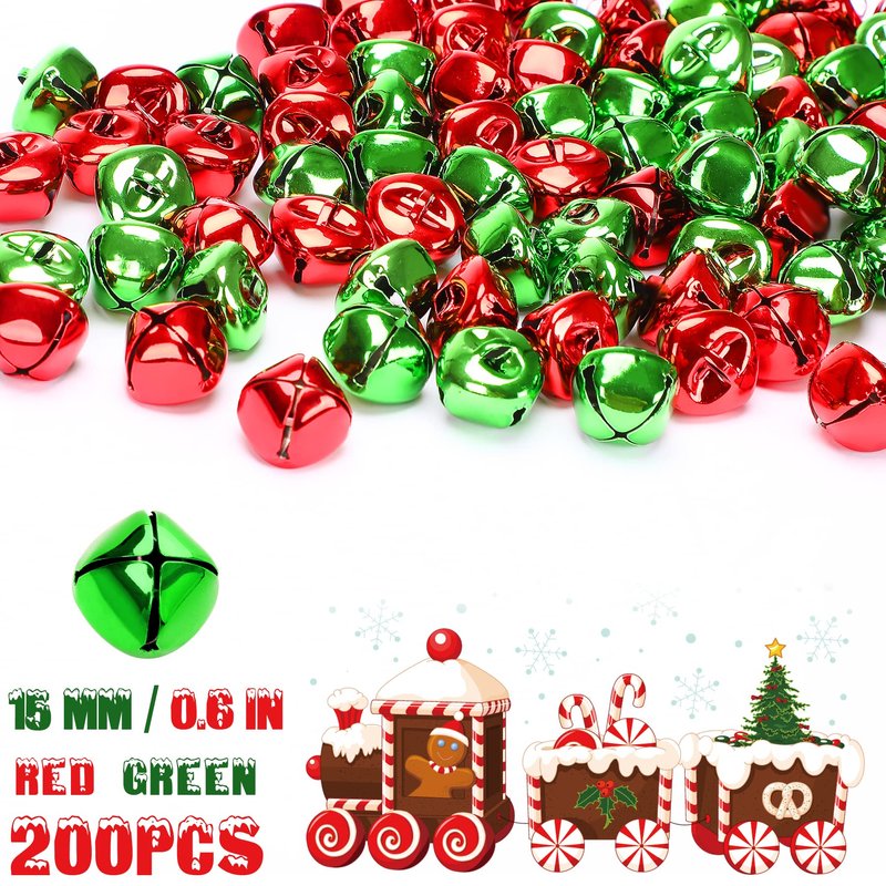 Augshy 200 Pieces Jingle Bells 3/5Inch Craft Bell Bulk for Christmas Home and Pet Decorations Xmas Decor Party Favors Supplies (Red and Green)