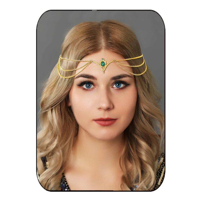 • Gold headpiece for women can be tight with extension chain, Please keep dry in stock after used.