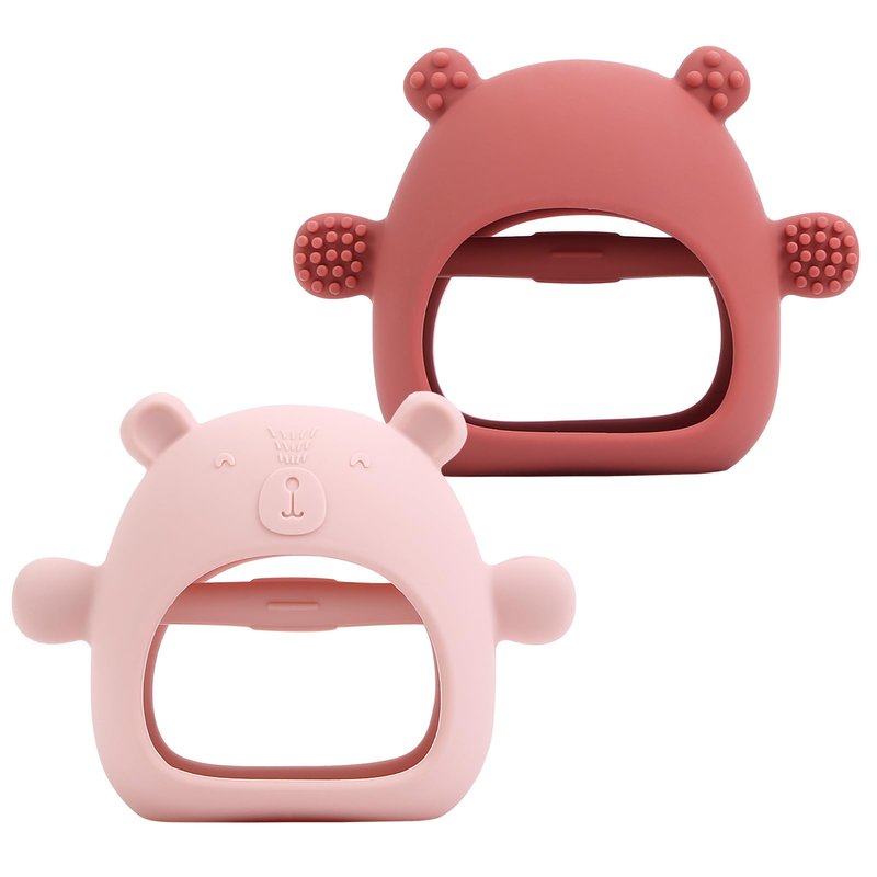 - 【FOCUS ON HEALTH, HAPPY GROWTH】Our bear glove teething toys are made of food grade silicone, non-toxic, BPA free, lead free, and phthalate free. One part design, no choking hazard, innovative active materials keep it from dropping and collecting dirt or hair, safe for your baby to use.