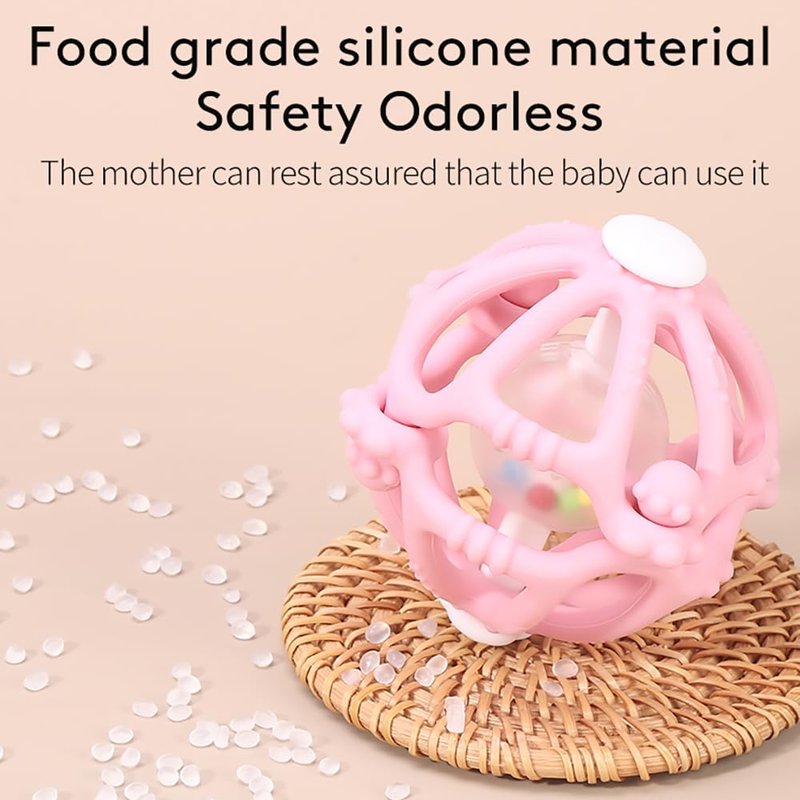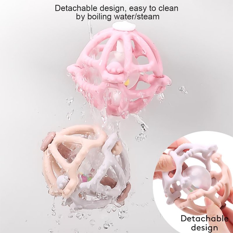 With a built-in rattle, our teething toy stimulates babies' curiosity and encourages exploration, the rattling inside the clear ball help your baby to explore hearing cause and effect, while also promoting hearing perception and hand-eye coordination.