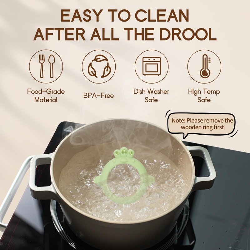 - Easy to Clean: Simply wipe clean or rinse the teether ring, the wood ring is removable, for easy thorough cleaning. Please note, avoid soaking wooden ring in water for extended periods.