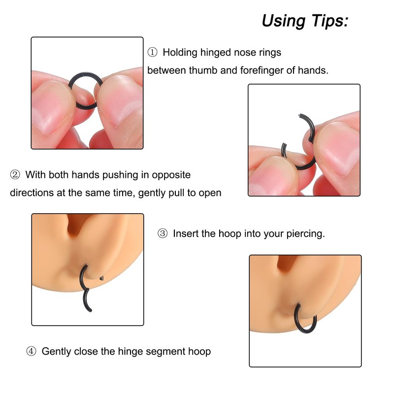 - Multi use: Can be used as nose rings hoop, septum piericng jewelry, lip rings, belly button ring, cartilage earring hoop, tragus earrings, daith earrings, helix earring, rook piercing jewelry, conch piercing jewelry.
