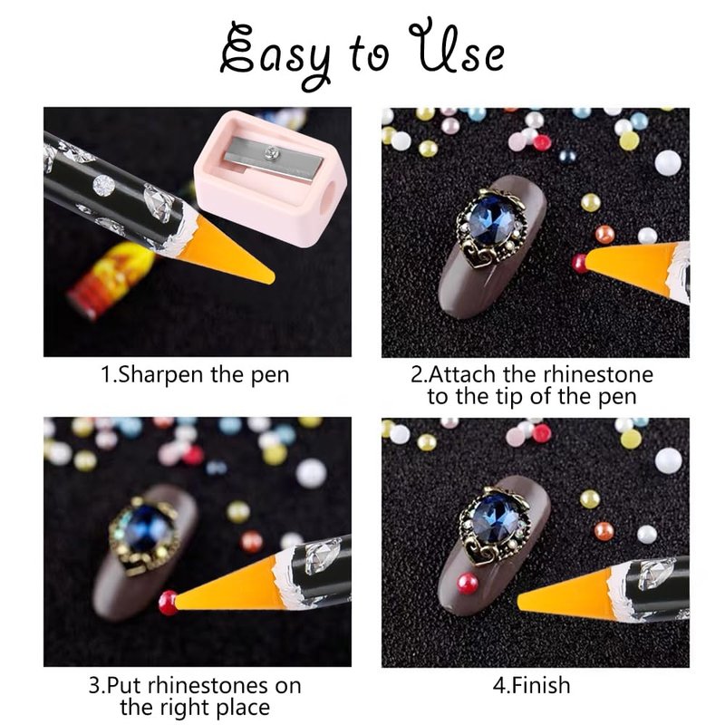 - Easy to use:You can sharpen the rhinestone picker pencil and keep the pencil tip in appropriate angle.Then attach the rhinestone to the tips of the pen.Place them on your fingernails or decorate your handcrafts