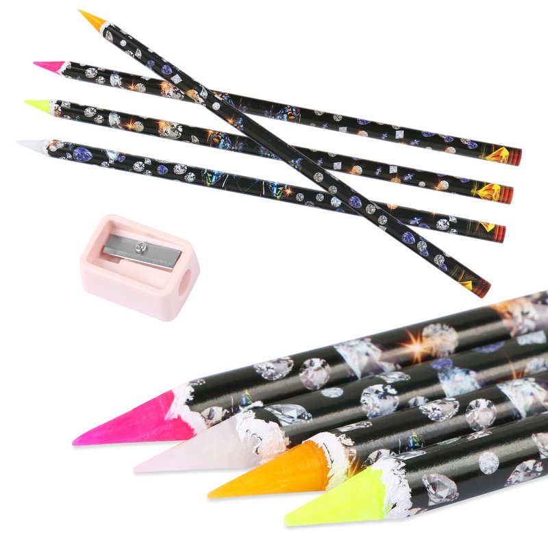 - Package Includes:You will receive 4 colors diamond art pens (the length is 9 inches)and 1 pc pencil sharpener. The point drill pen is self adhesive and easy to pick up the crystal gem