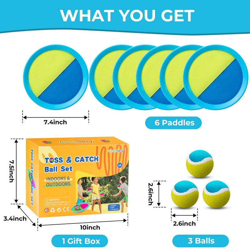 - Funny Toss and Catch Ball Games: Our beach toys for kids 8-10 include 6 paddles and 3 balls, 1 exquisite storage bag. It is easy to play, one side throws the ball and the other catches the ball. This game can be played by 2-6 people, which is flexible and funny to bring both kids and adults together to play the game.