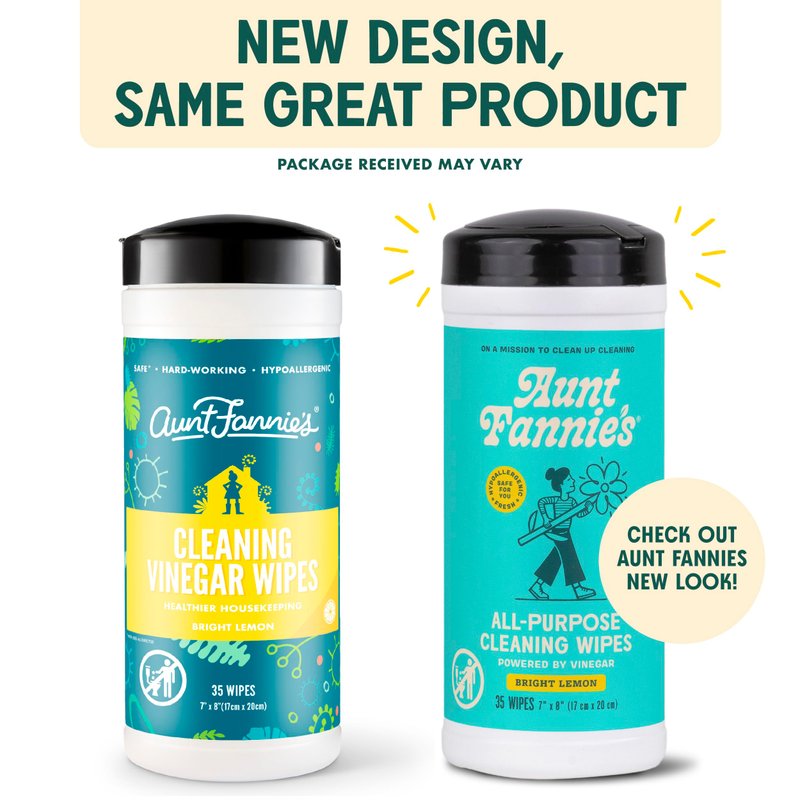 Aunt Fannie's Natural Cleaning Vinegar Wipes, Multipurpose Surface Cleaner, Bright Lemon Scent, 35 Count (Pack of 1), Packaging May Vary