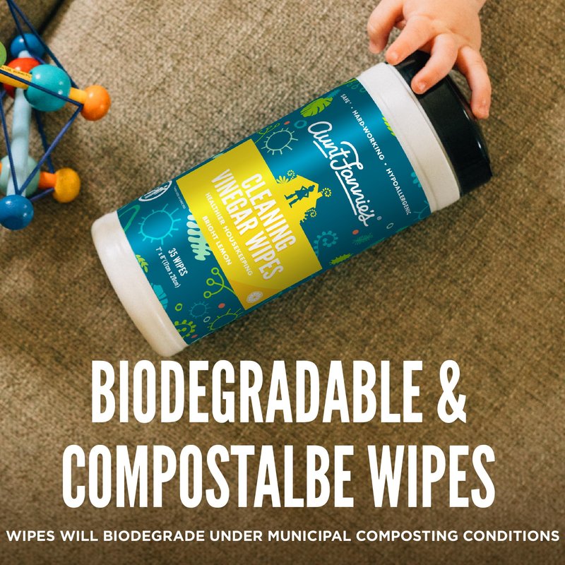 - Biodegradable & Compostable: Our vinegar wipes will biodegrade under municipal composting conditions; formulated without alcohol or harsh chemicals, and our formula is EWG A-rated for your safety