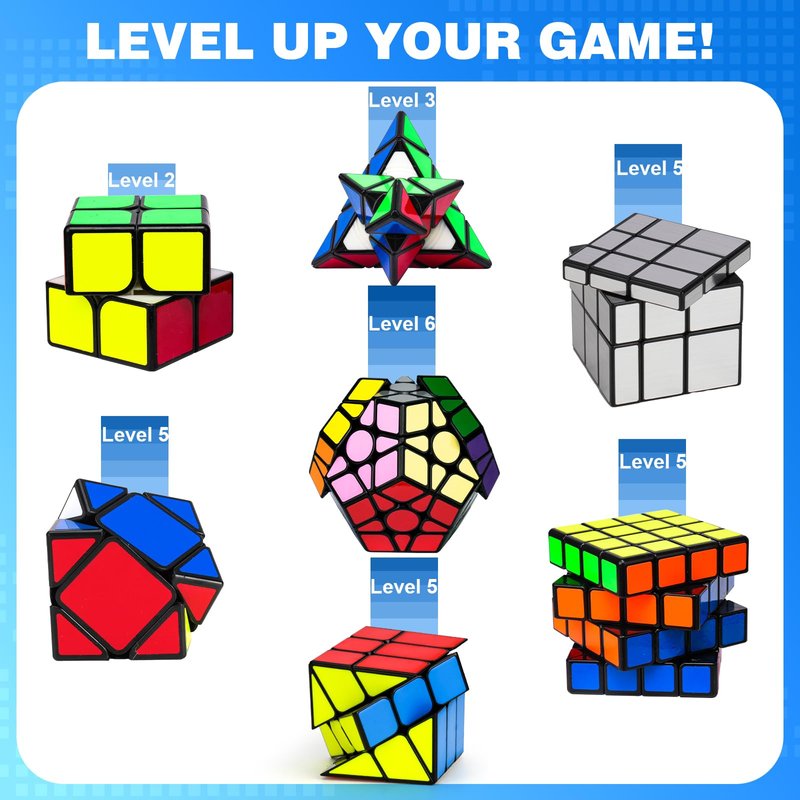 - SMOOTH & STURDY SPEED CUBE SET: Experience unmatched speed and fluidity with our speed cube bundle, which includes five distinct puzzles: the 2x2, 3x3, 4x4, megaminx, pyramid cube, mirror cube. Crafted with a solid core and cutting-edge technology, this set offers a swift and smooth solving experience that both beginners and expert enthusiasts will enjoy.