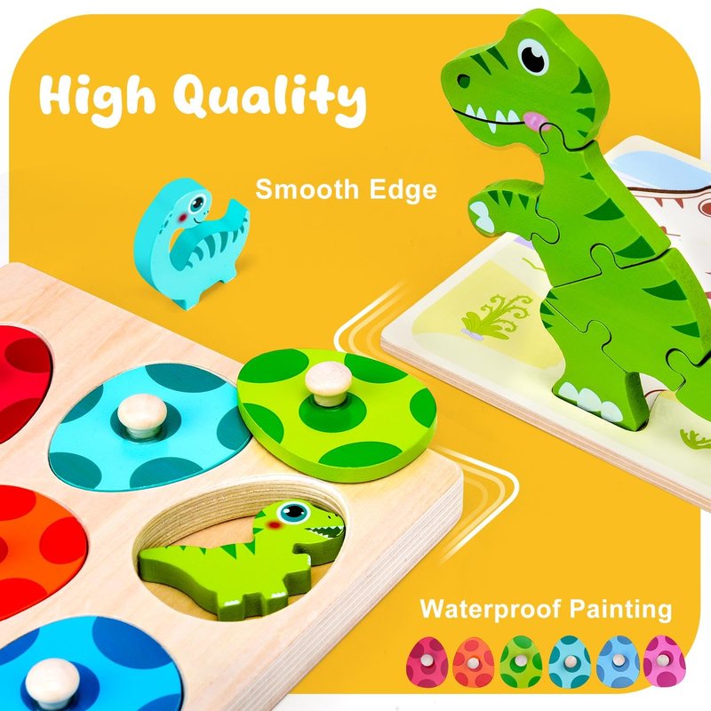 - SMOOTH EDGES AND BRIGHT COLORS: The smooth edges of our Dinosaur Egg Puzzle set ensure little hands are safe from harm. The vivid colors captivate young minds and help develop color recognition, making it an exceptional learning toy for toddlers. This engaging puzzle set is a must-have for fostering essential early learning skills in a fun and colorful way!