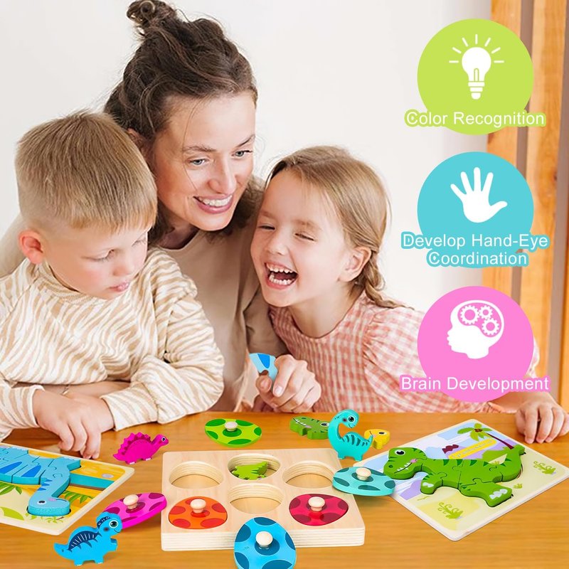 Ideal for both boys and girls, this educational set serves as a wonderful toy, offering hours of fun while fostering patience, imagination, focus, and cognitive development. Whether for a birthday, holiday, or just because, the "2+1 DINOSAUR PUZZLES SET" is a thoughtful Montessori-inspired choice that encourages learning through play, making it a must-have for any young learner's toy collection.