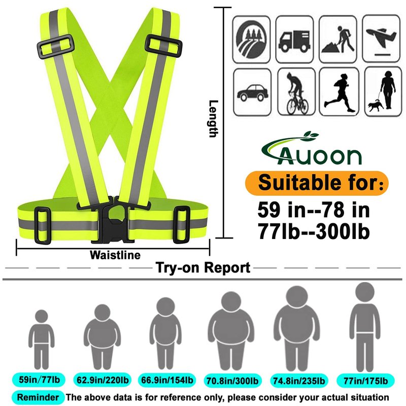 - Easy to use and super universal: it can be easily fixed with heavy-duty and sturdy clasps, and the size can be adjusted (it can be worn externally, and is suitable for summer or winter coats). Provides visibility into many activities. This is the easiest way to improve the safety of you and your family. Perfect for walkers, runners, motorcyclists and drivers (put the suit in the car for emergencies or breakthroughs).