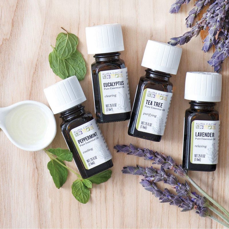 - VERSATILE AND AROMATIC - Aura Cacia Discover Essential Oils Kit includes Aura Cacia Lavender Essential Oil, Aura Cacia Peppermint Essential Oil, Aura Cacia Eucalyptus Essential Oil and Aura Cacia Tea Tree Essential Oil. Each kit also includes a learning guide with quick tips, recipes, dilution rates and safety guidelines.