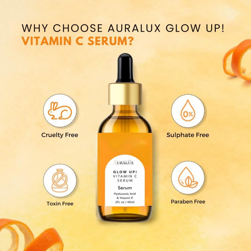 Auralux Vitamin C Face Serum with Hyaluronic Acid - Anti-Ageing Serum - Reduce Fine Lines & Wrinkles - Niacinamide Skin Serum with Vitamin E - Gentle Hydrating Serum for All Skin Types - 2 fl.oz