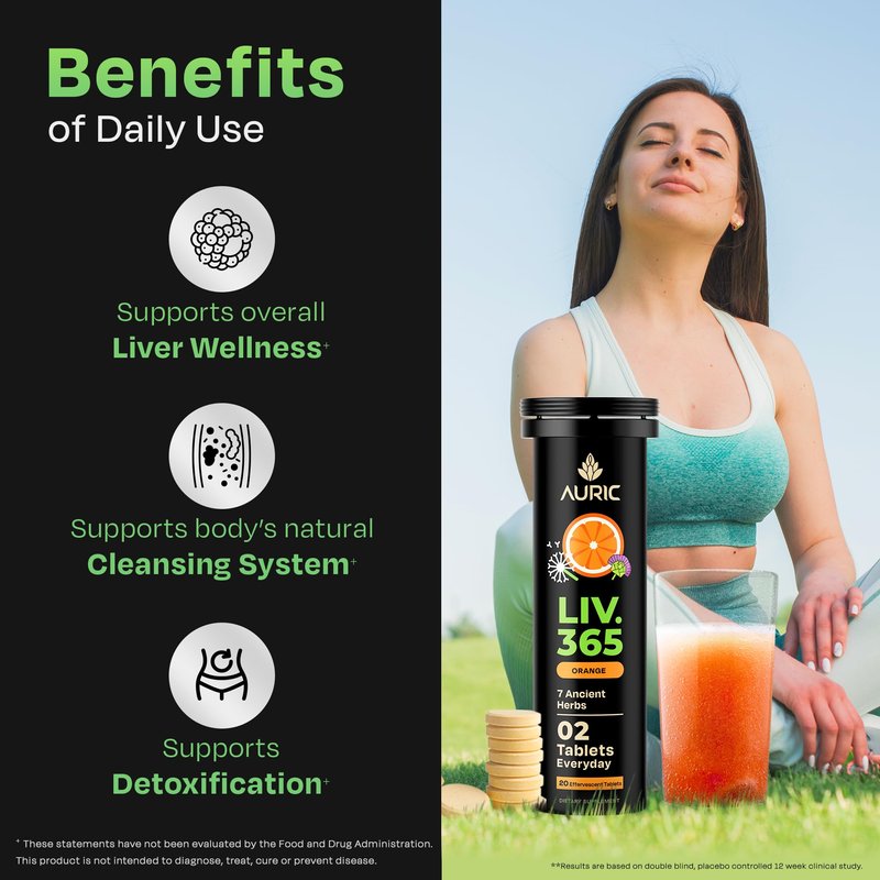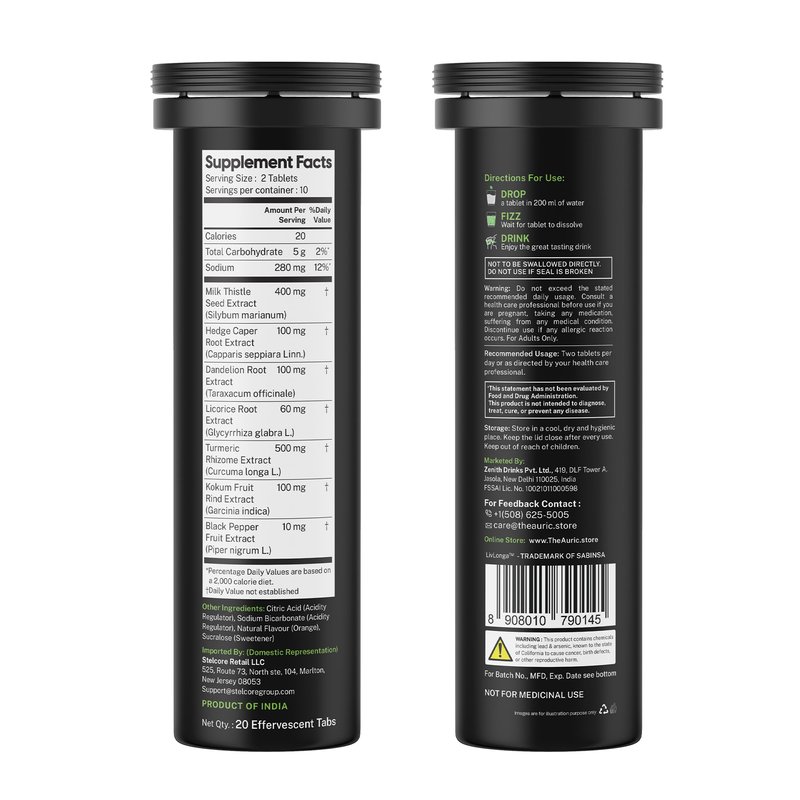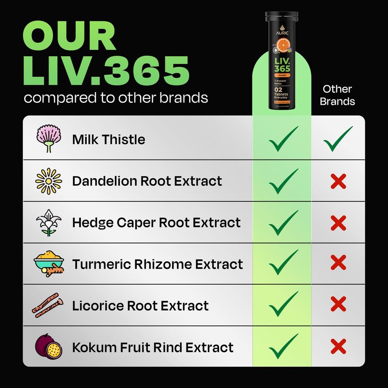 Auric Herbal Liver Support Supplement | Milk Thistle (Silymarin), Turmeric, Garlic, Ginger for Liver Health | Advanced Detox & Cleansing Formula for active Liver | 20 Tablets | Plant Based Gluten-Free