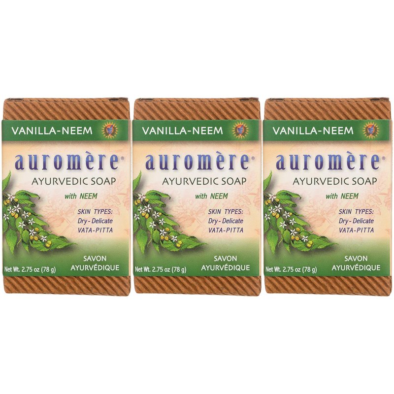 Auromere Ayurvedic Bar Soap, Vanilla Neem - Eco Friendly, Handmade, Vegan, Cruelty Free, Natural, Non GMO (2.75 oz), 3 pack