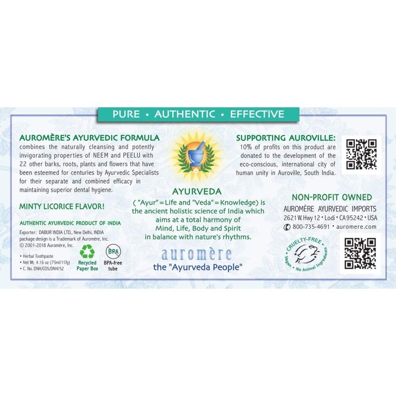 Auromere Ayurvedic Herbal Toothpaste, Classic Licorice - With Neem & Peelu, Natural Toothpaste, Non-GMO, Fluoride Free Toothpaste, Vegan, Cruelty-Free, Lasts 3x Longer than Regular Toothpaste - 6 Pack