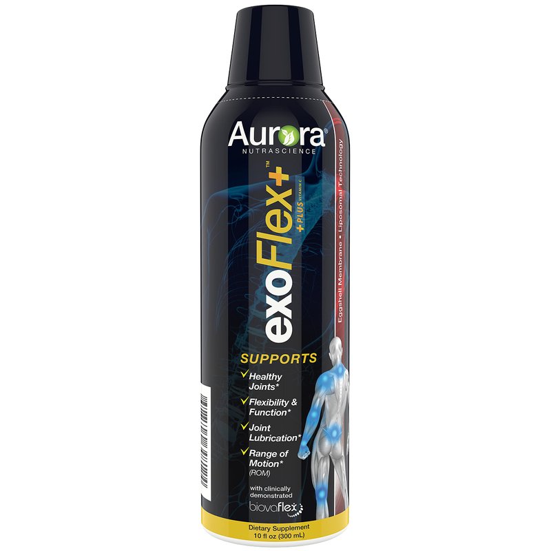 Aurora Nutrascience's exoFlex Eggshell Membrane is a revolutionary formula designed to enhance flexibility. Packed in a 10 fl oz (300 mL) bottle, this potent blend incorporates BiovaFlex, Vitamin C, Curcumin, and Boswellia to support improved joint mobility. Experience the synergy of natural ingredients working together in this convenient liquid supplement, promoting overall joint health and flexibility.