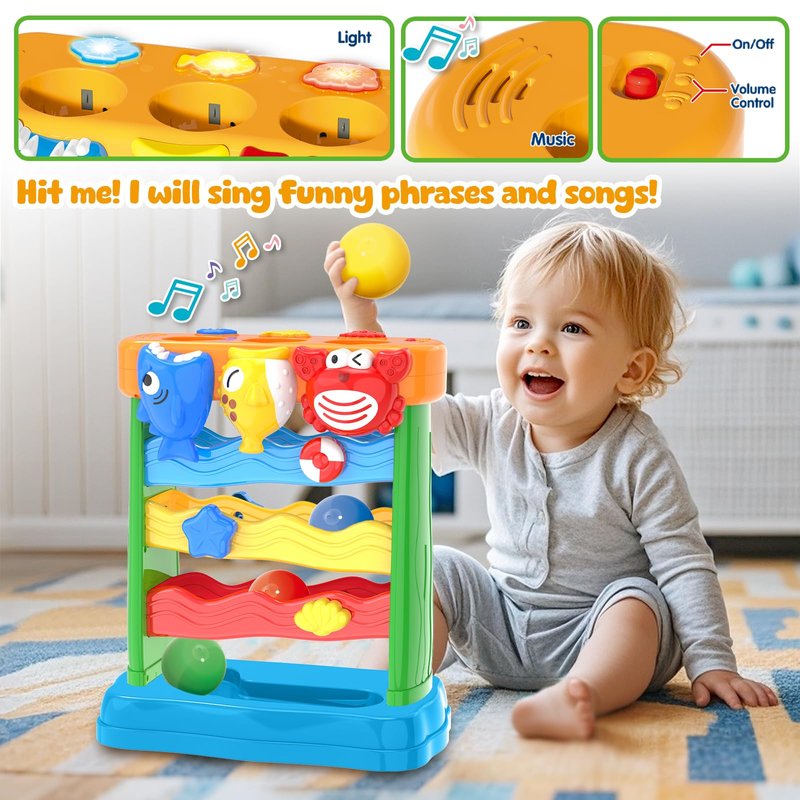 - Lights & Music for Endless Fun: This toddler toys featuries multiple phrases and songs and built-in vibrant light effects that flash with the rolling balls and adjustable music volume, this baby toy provides a visual and auditory feast, making the pound a ball toy game play even more lively and enjoyable.
