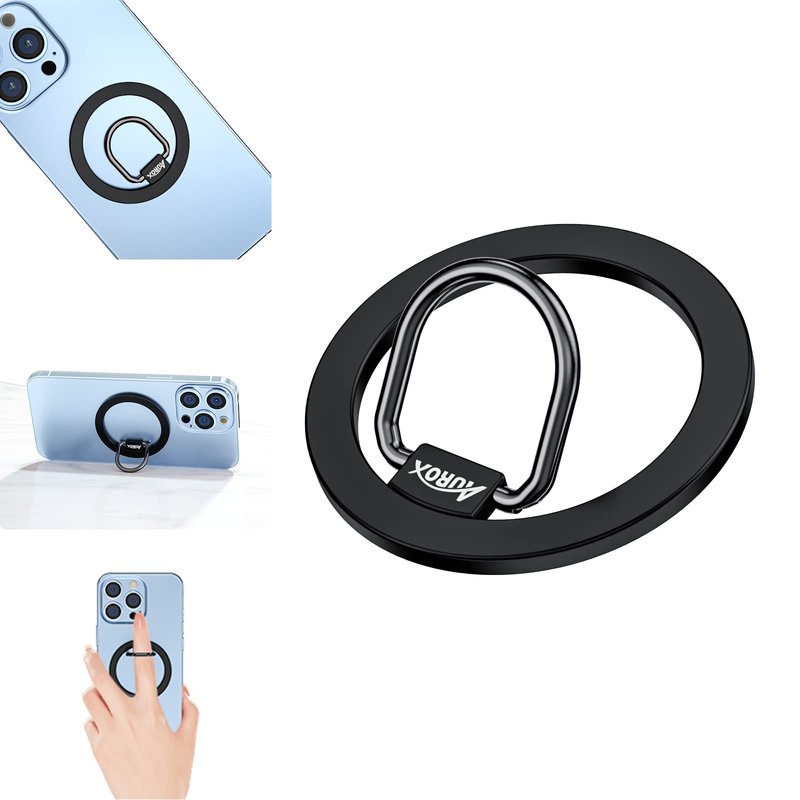 AUROX Magnetic Phone Ring Holder for Magsafe Phone Grip Adjustable Magnetic Phone Grip for MagSafe Accessories Finger Ring Grip Stand for iPhone 16 15 14 13 12, Removable for Wireless Charging (Black)