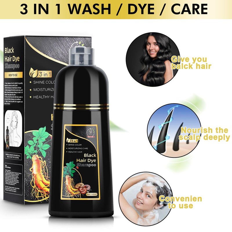 - 【Black hair dye shampoo 3 in 1】: It works as hair dye, conditioner and shampoo. It's convenient and fast to use at home, saving time.