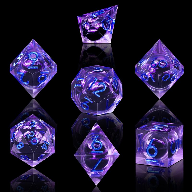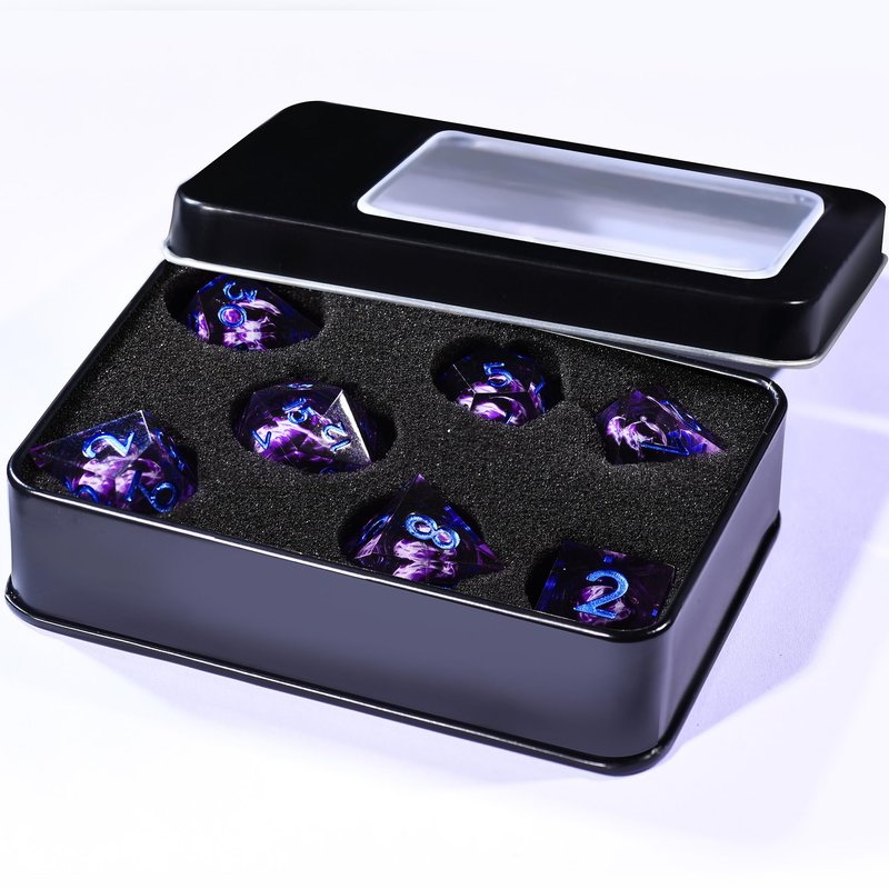 AUSTOR 7 Die DND Dice Set 7 Pieces Violet Flame Dragon Resin Dice Role Playing D and D Dice D20 D12 D10 D8 D6 D4 Sharp Edge Dungeons and Dragons Dice with Case