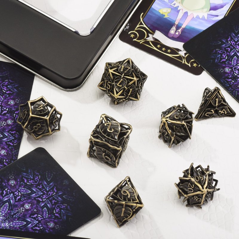 - Maple Leaf DND Dice Set - These metal dnd dice are designed with the theme of maple leaf, carved with exquisite hollowing techniques, giving these polyhedral dice delicate and unique appearance