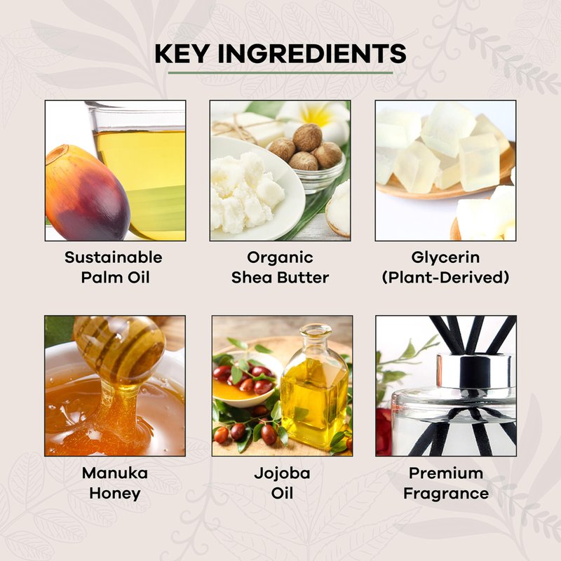 - Real New Zealand Manuka Honey - Our soap contains UMF 10+ Manuka Honey, which contains a natural compound called methylglyoxal (MGO) formed in the nectar of the Manuka flower, nourishes and moisturizes dry skin and eliminates bacteria on the surface. A pure plant oil soap bar with a distinctive honey fragrance and the added benefits of Jojoba Oil, which is rich in Omega 6 and 9 fatty acids and Vitamins A, D, and E.