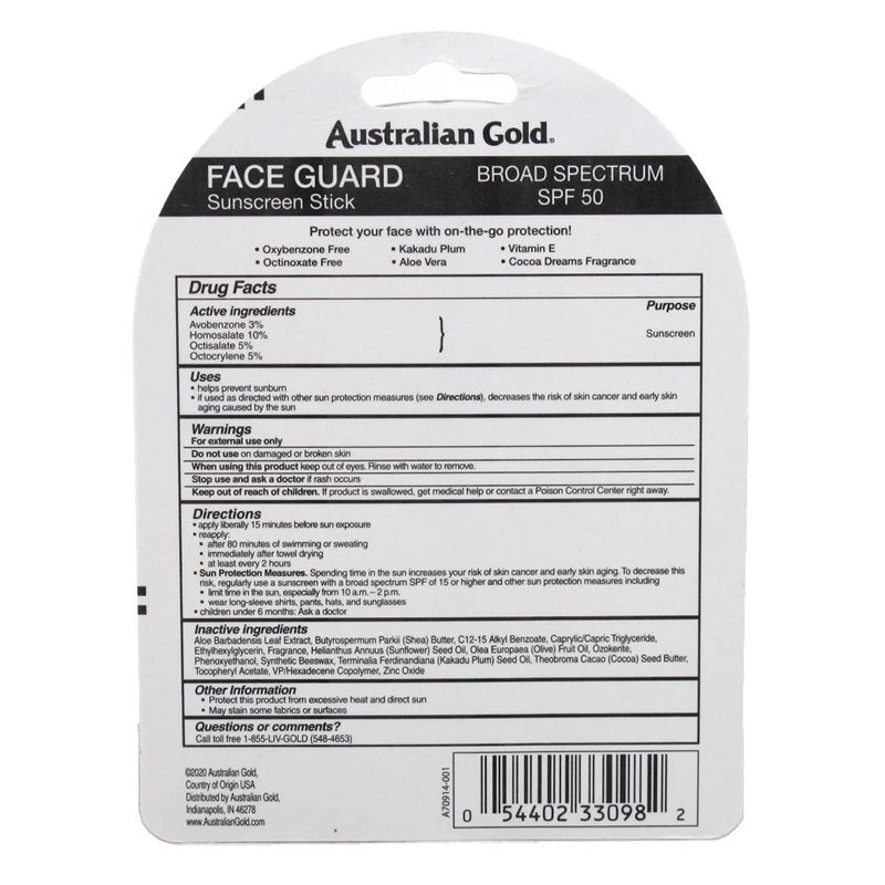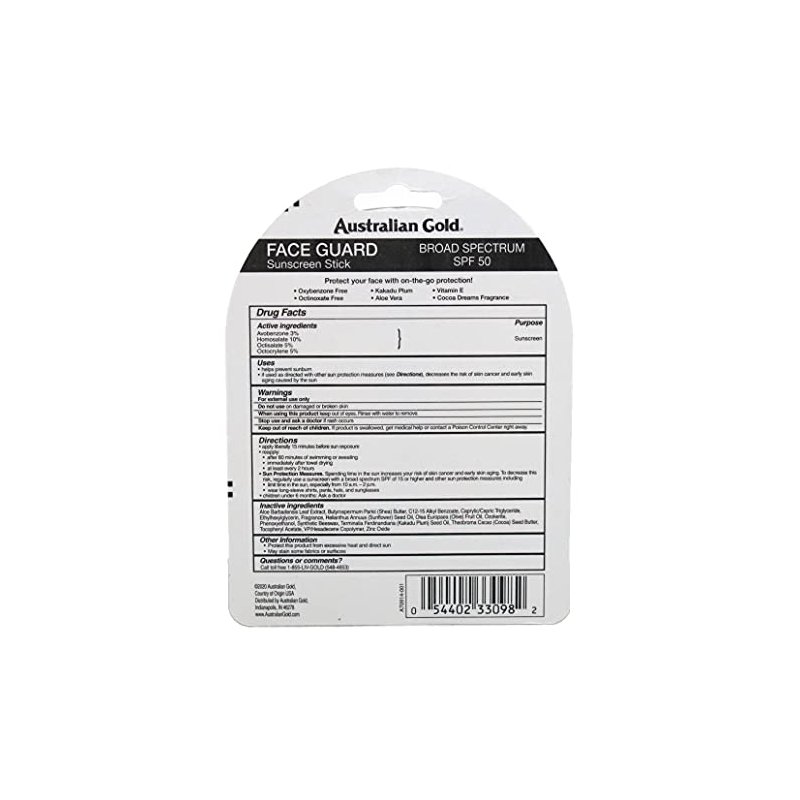 Australian Gold Spf#50 Face Guard Stick 0.6 Ounce (17ml) (3 Pack)