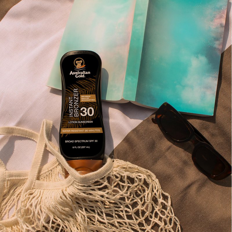 Australian Gold Sunscreen Lotion with Instant Bronzer, Broad Spectrum, Water Resistant, Non-Greasy, Oxybenzone Free, Cruelty Free, SPF 30, Coconut, 8 Fl Oz (A70902)