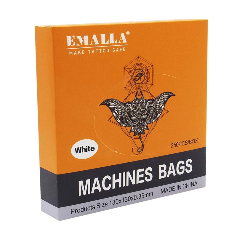 - NEW TATTOO MACHINE COVER - New tattoo machine covers color is white, the thick is thicker than old type tattoo machine sleeves, exact sizes is 5.12*5.12*0.01 inch (130*130*0.35mm), it is sold by 250pcs for each box