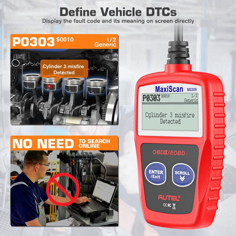 Autel OBD2 Scanner 2023 Newest MS309 Automotive Check Engine Code Reader, Check Emission Monitor Status, CAN Diagnostic Scan Tool for All OBDII Protocol Vehicles After 1996
