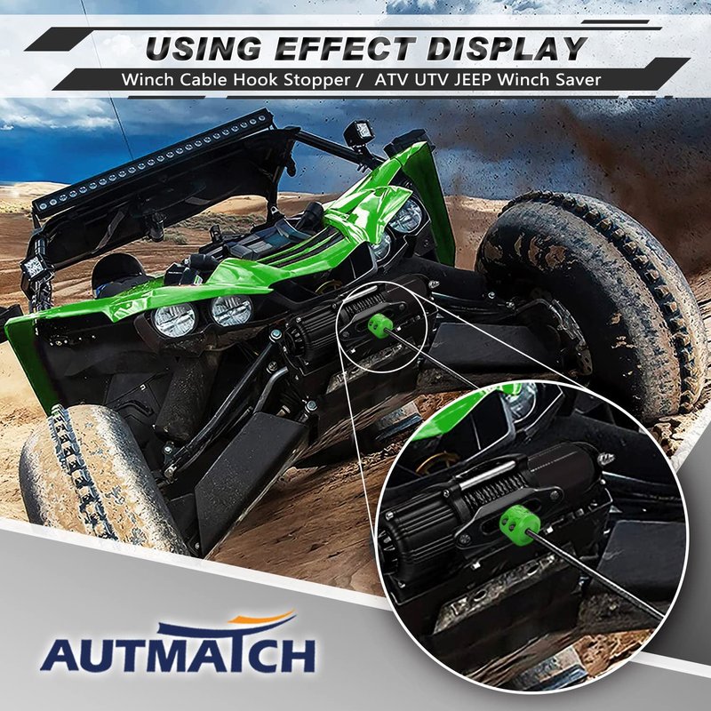 AUTMATCH Winch Cable Hook Stopper (2 Pack), Silicone Rubber Winch Stopper for Wire & Synthetic Rope, Winch Line ATV UTV, Shock Absorbent, Prevent Pulling Bounce and Abrasion, Green