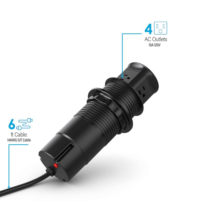 - Pop up Table Power Outlet:4 Grounded 3 Prong AC Outlet,provide more options when you need more than one plug.with 6ft Extension Cord.