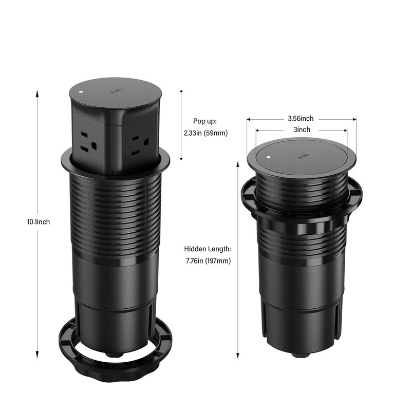- Countertop Pop up Outlet: Fully automatic retractable desktop design,this unique grommet power outlet get rid of hefty adapters and messy plugs.