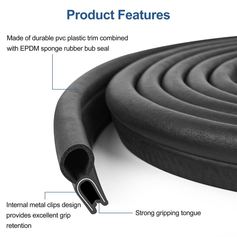 - 【Product Structure and Size】This car door rubber seal strip is 10ft. U Shape PVC Trim adopts the high-quality internal metal clips structure provides excellent grip retention to promise a stable and strong grip, and the EPDM rubber top bulb provides a secure seal for a variety of applications. The trim bulb seal fits 1/16"-2/25" edge, bulb diameter is 0.55".