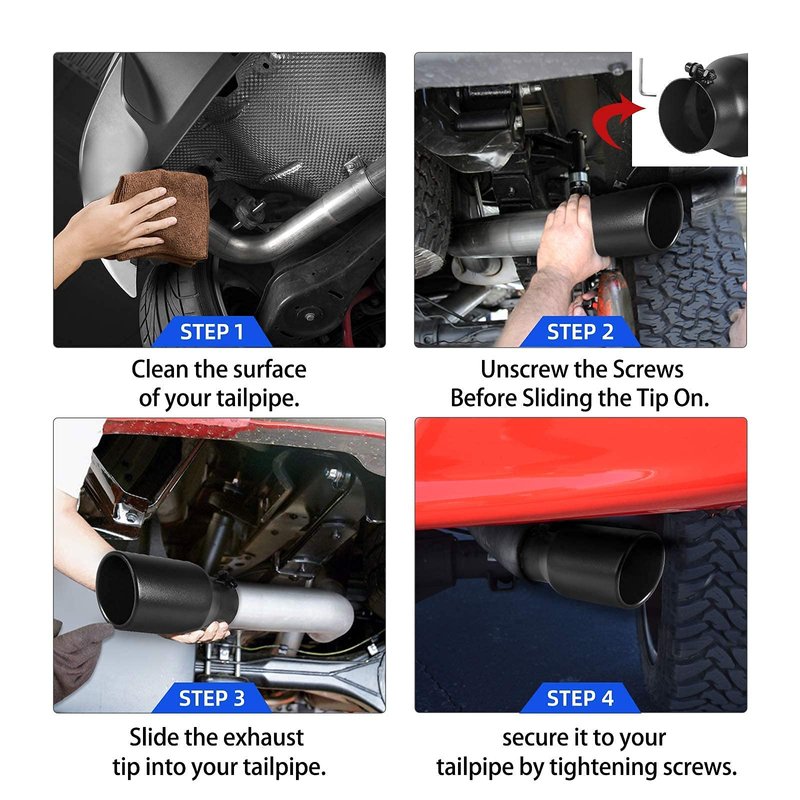 - Anti-deformation & rustproof: Built from high-grade stainless steel, our exhaust tips effectively resist heat, rust and deformation to protect & decorate your tailpipe system well; plus, a drainage hole helps drain water to prevent rust