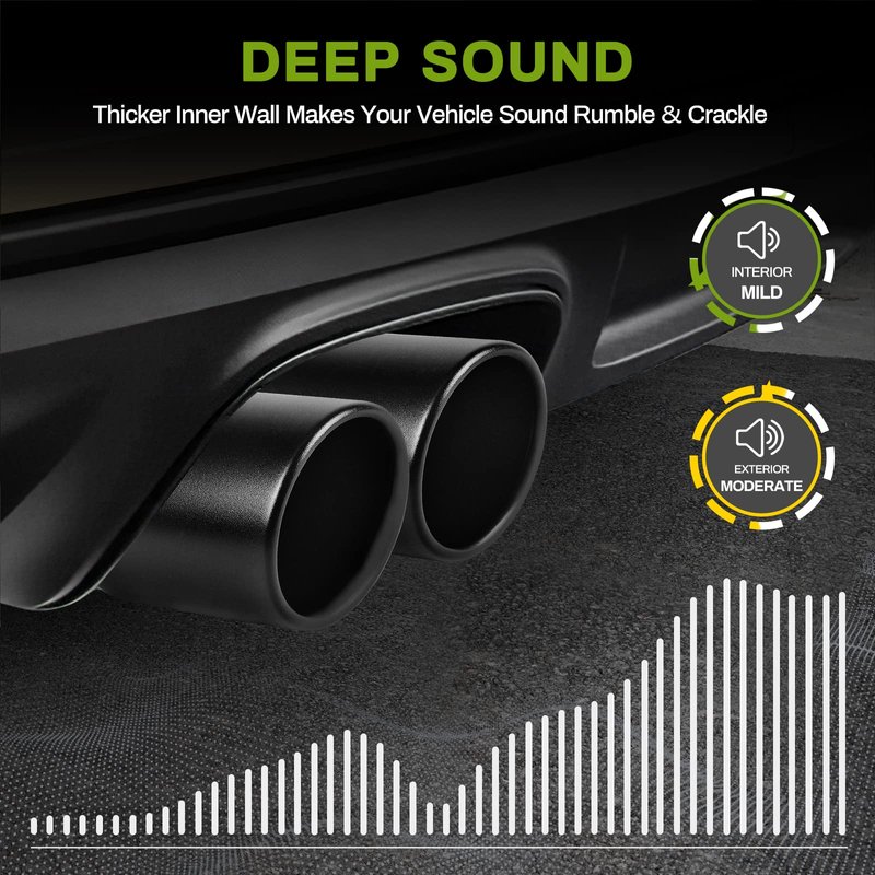 - Stylish & pleasant-sounding: Sleek degree rolled-edge angle cut and thicker inner wall design make your car sounds rumble and crackle for a more powerful and unique sound; meanwhile, the black powder coated finished would offer your car with a elegant & mysterious appeal