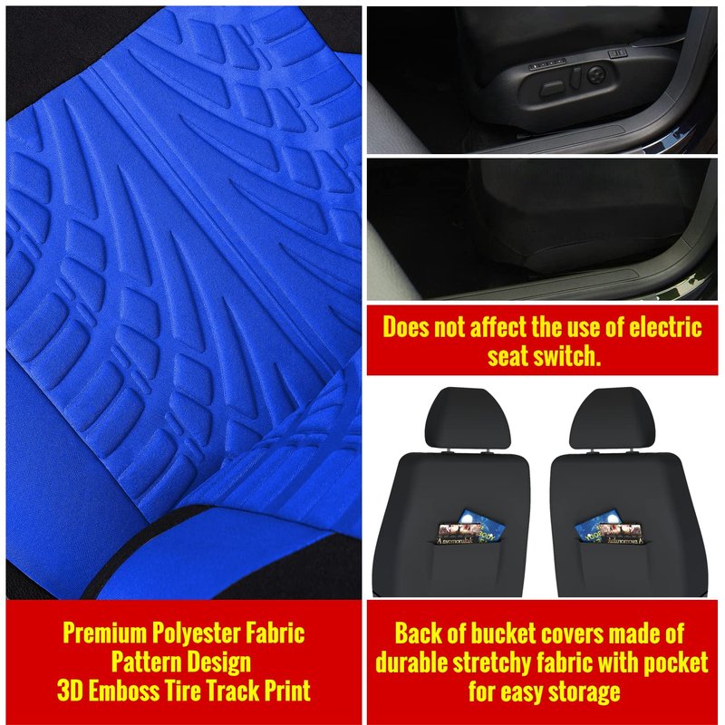 - High Quality Fabric: durable polyester fabric + 4mm foam backing + mesh cloth finishing layer provide enhanced comfort to these attractive seat covers, 100% washable and breathable.
