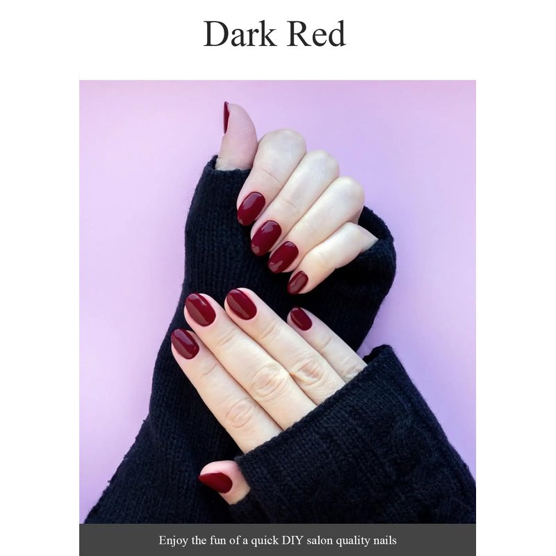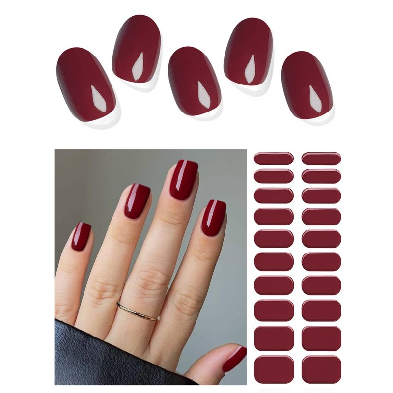 AutyaMee Semi Cured Gel Nail Strips (Dark Red)-20 PCS Wine Red Gel Nail Stickers Kit | Works With UV Light | Gel Nail Wraps, Salon Quality & Easy To Use