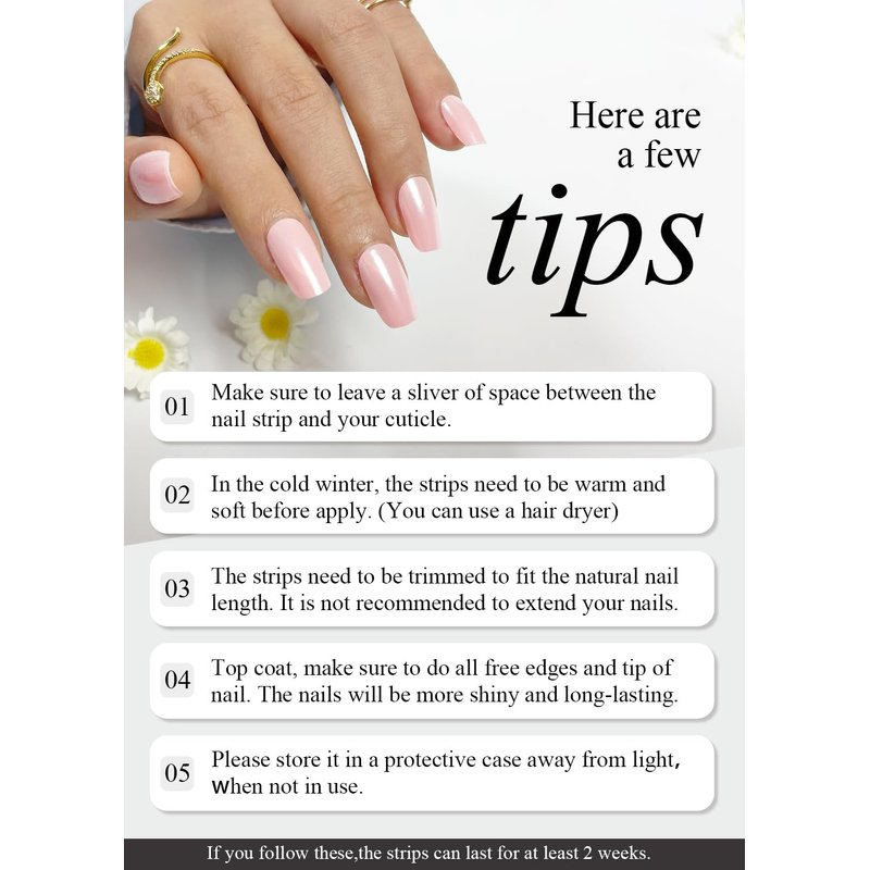 - 【Keep Nails Damage-Free】- UV cured nail stickers do not require buff the nail surface when applied and are easy to remove. Our nature nails will stay healthy even if we change styles frequently.
