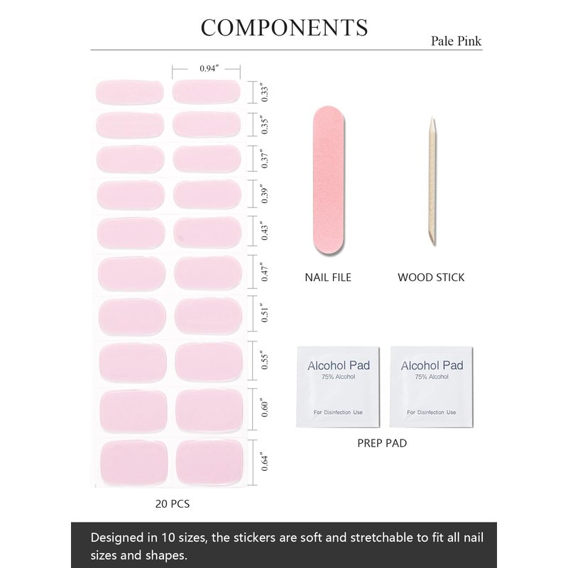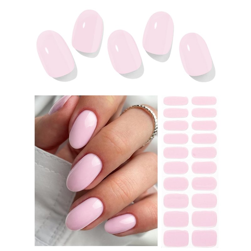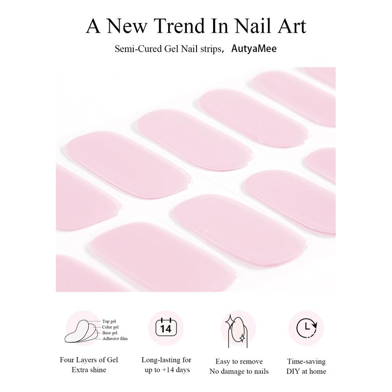 AutyaMee Semi Cured Gel Nail Strips (Pale Pink)-20 PCS Gel Nail Stickers | Gel Nail Wraps | UV Light Required, Salon Quality & Easy To Use