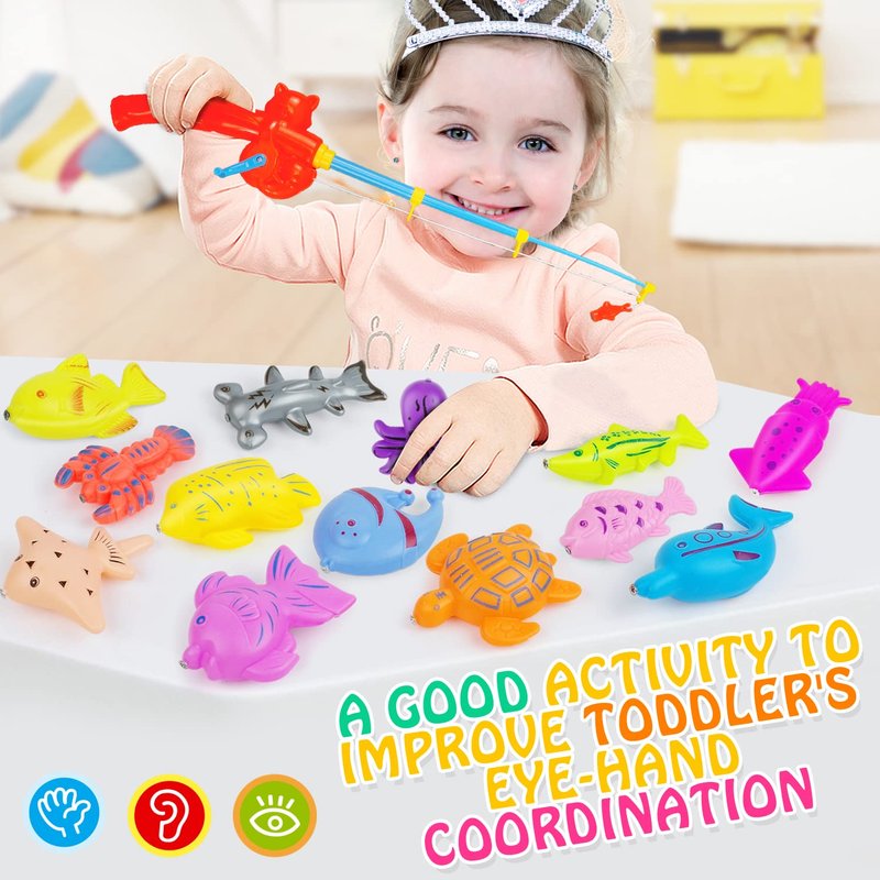 - Fun and Engaging Playtime: Our Magnetic Fishing Game Bath Toys offer hours of entertainment for kids during bath time, pool parties, or water table activities. With fishing rods, nets, and a variety of adorable fish, children can exercise their hand-eye coordination while having a blast.