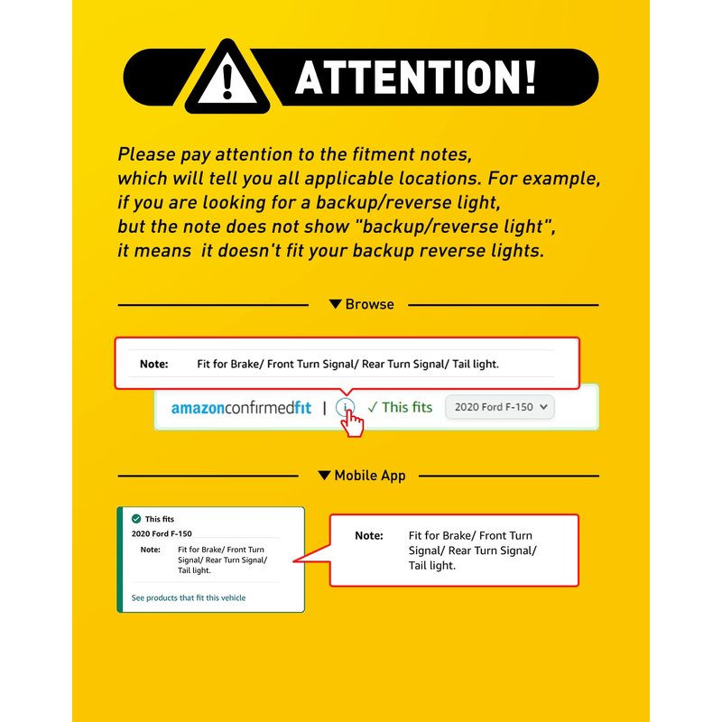 - Can be used as backup light, tail light, brake light, etc. Amazon filter system may not be 100% accurate or up to date, if you are not sure which type fit your vehicle, please check your owner manual to confirm