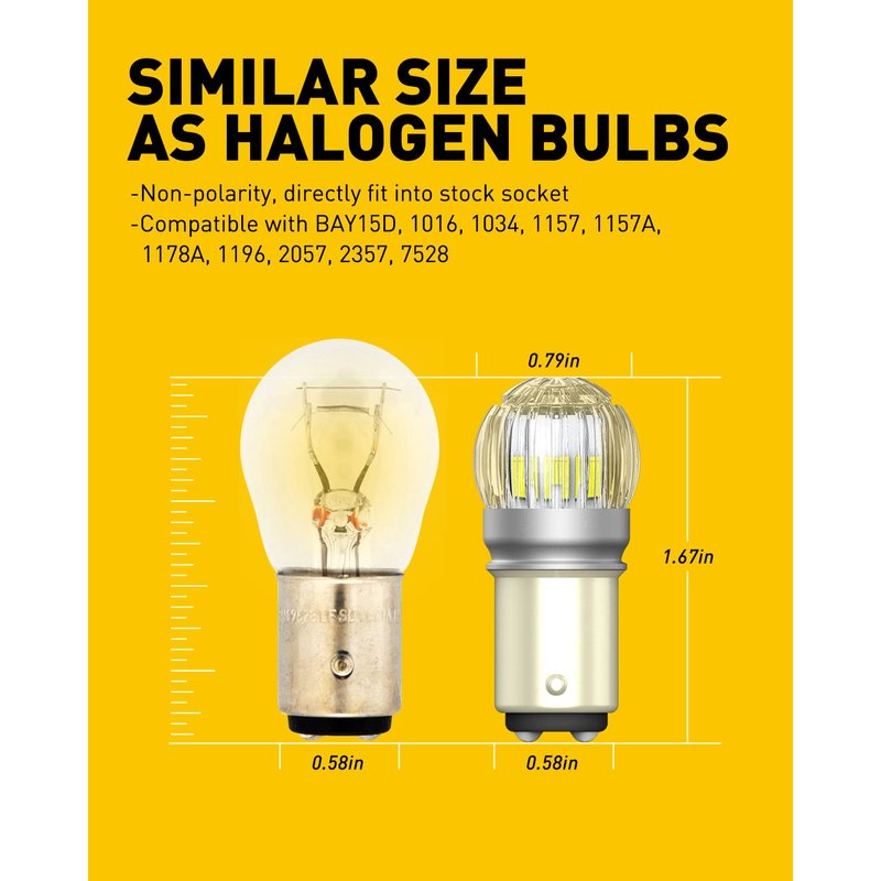 - 【Awesome Pattern & Full Brightness】AUXITO design those 1157 white led bulbs with scientific theory with almost 1:1 shape and same light emitting point. Giving 6000K fuller light in your lens, more stylish and clean