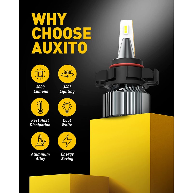 - 【Widely Application】AUXITO led fog light bulb are used for upgrading halogen 5202/5201/PS19W/PS24W/PS24WFF/12085/9009/12086/H16(EU) fog light bulb or DRL which fit sierra, yukon, silverado. With a waterproof design, they can be used perfectly in foggy, rainy, dusty without worrying about water and dust getting inside