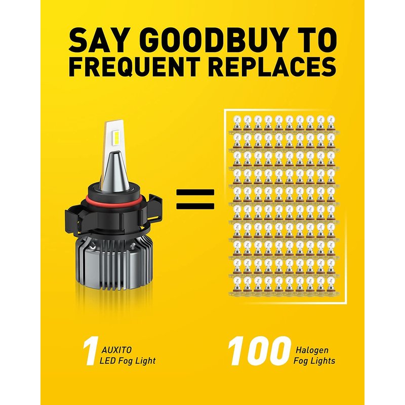 - 【Safer Driving Experience】AUXITO 5202 led fog light bulbs feature with 1:1 halogen beam design and 0.079 ultra-thin chip copper board to ensure perfect beam pattern and 360° illumination, can improve the visibility of the driver and allow vehicles and pedestrians to find each other far away