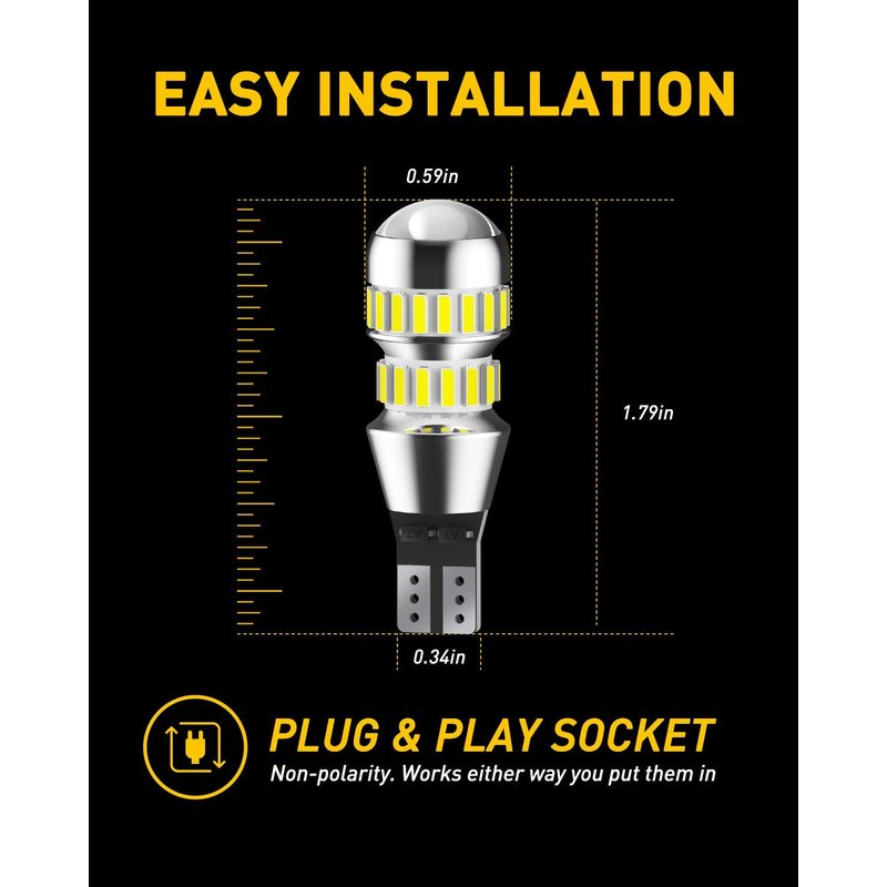 - Application: Used for upgrading the stock back up lights, reverse lights, plug and play direct replacement for 912, 921, 906, 904, 902, 922, W16W, T15, etc socket